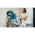 Des roulettes pratiques facilitent le déplacement de la chaise haute. Elles sont protégées par un revêtement spécial pour prévenir les marques au sol. Après dépôt de la chaise à l’emplacement désiré les roulettes pourront être bloquées pour prévenir tout déplacement.