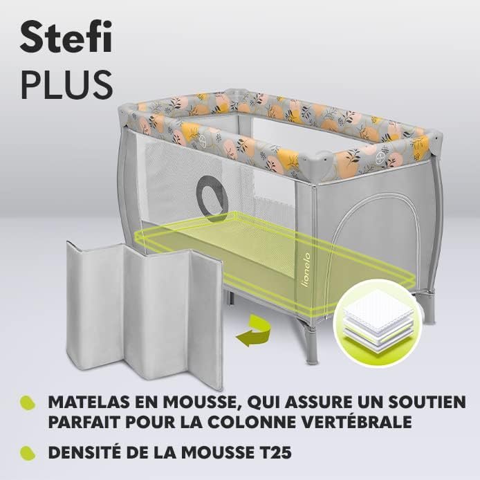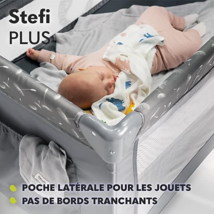 Facile à déplacer grâce à ses deux roulettes, le lit Stefi est tout aussi facile à emporter dans tout vos déplacements grâce à son pliage compact et à son sac de transport. Vous pourrez le déplier rapidement pour que bébé puisse dormir n’importe où en tout confort.