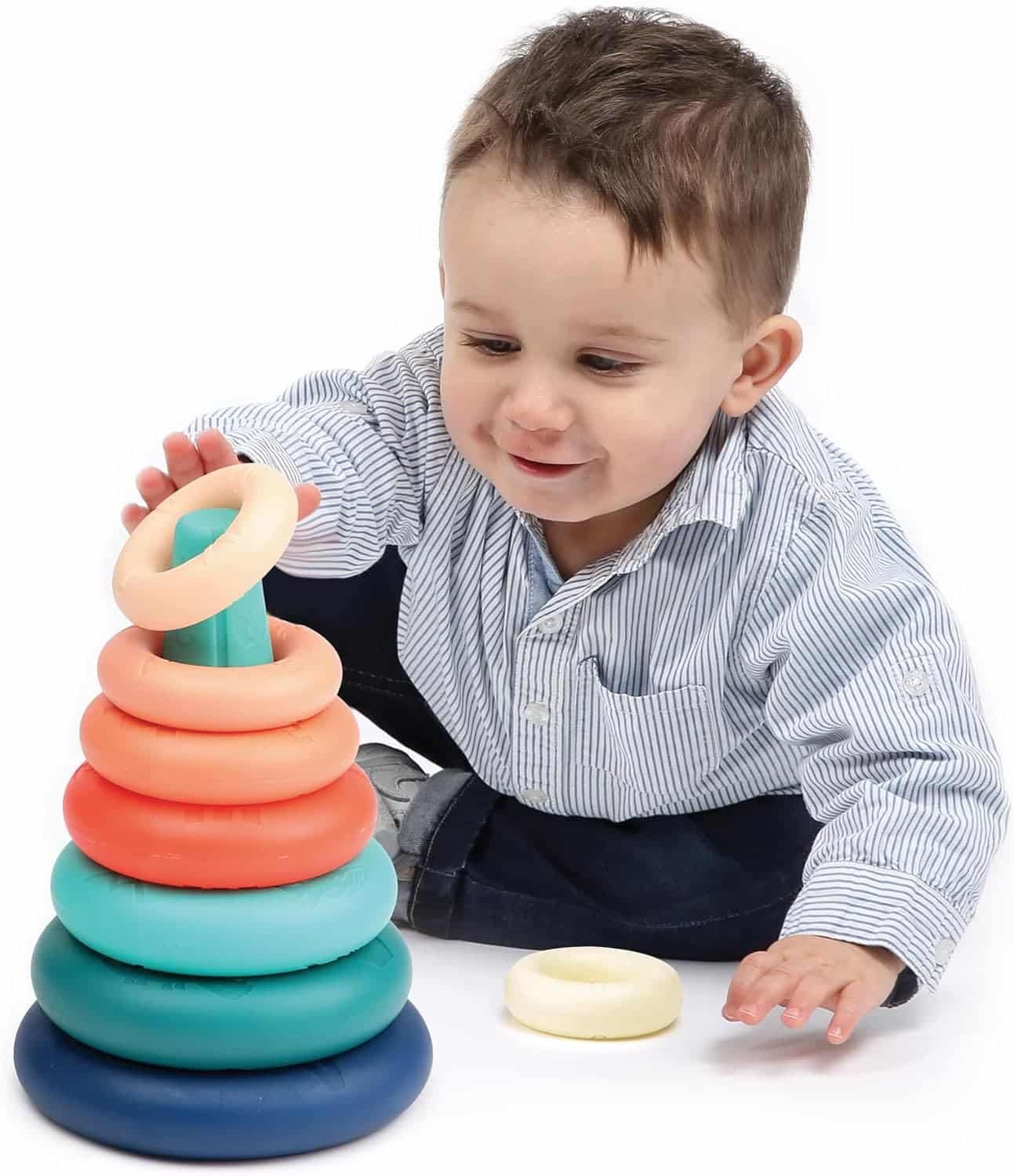La tige centrale est en forme de cône. Cette particularité guide les enfants à classer les anneaux du plus grand au plus petit pour pouvoir tout empiler. L’esprit de logique est sollicité !Les différentes tailles offrent à bébé ses premières notions de grandeurs et développent sa mémoire.