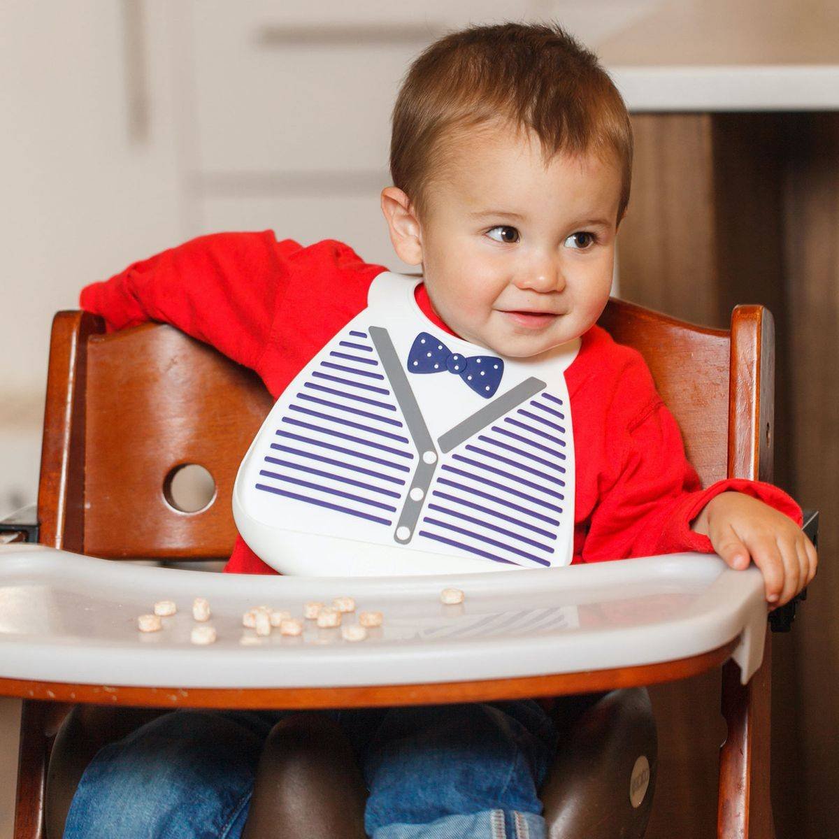Fini les bavoirs à ramasser sans arrêt et la gêne occasionnée par les serviettes et bavoirs trop serrés ou mal positionnés. Place aux repas en toute tranquilité: