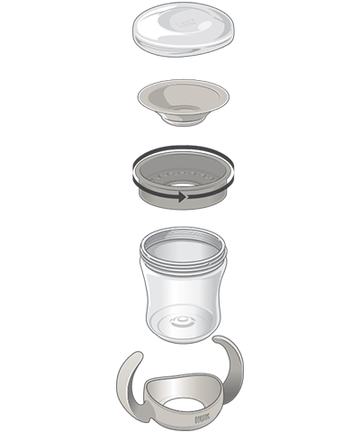 Chaque pièce est conçue pour s’adapter à une phase d’apprentissage différente et se change facilement au fur et à mesure que les aptitudes du bébé se développent. En outre, tous les accessoires sont étanches à 100 %. Ainsi, votre enfant reçoit toujours le soutien dont il a besoin à un moment donné, et qui rend l’apprentissage de la boisson amusant.