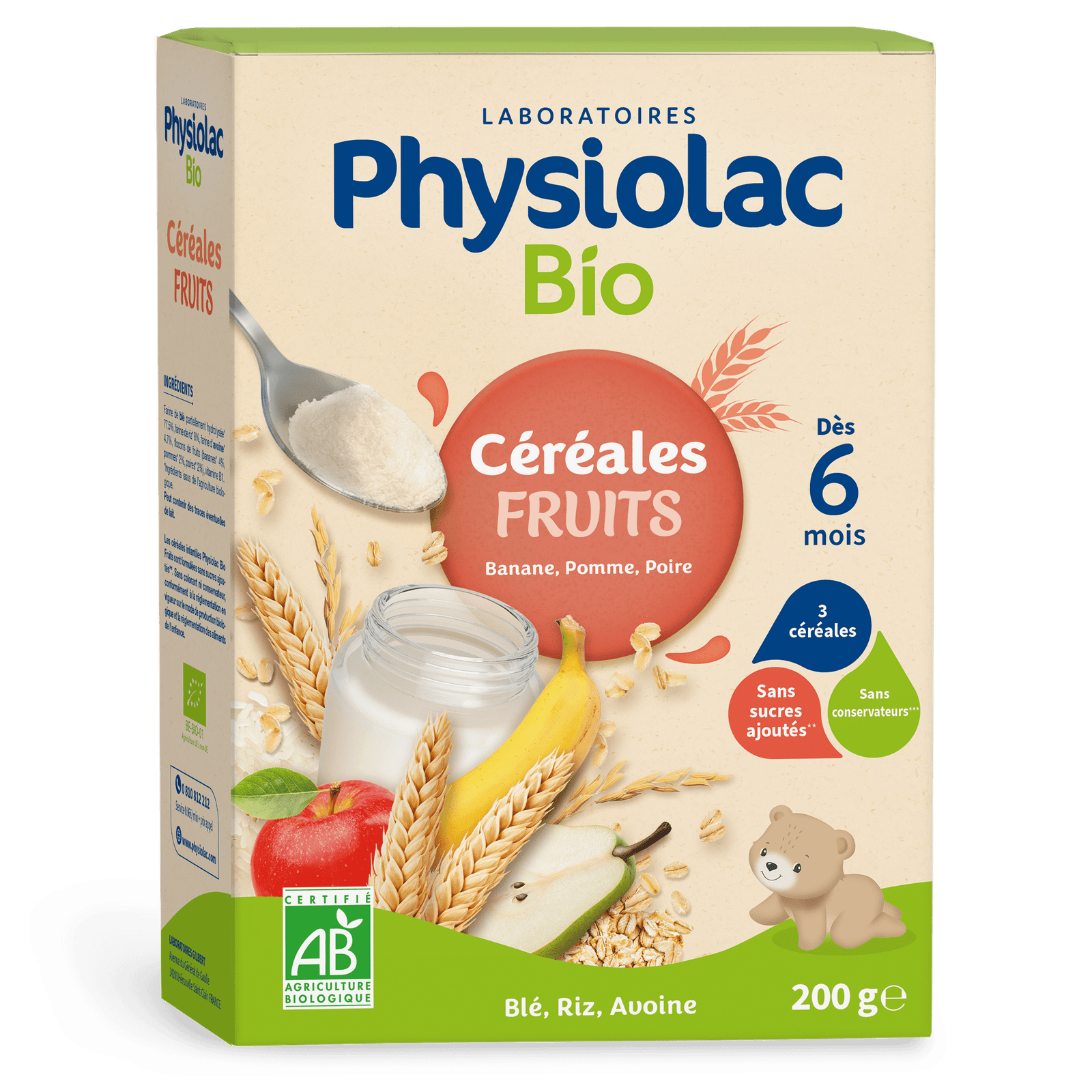 Physiolac Bio Céréales Fruits 6mois+