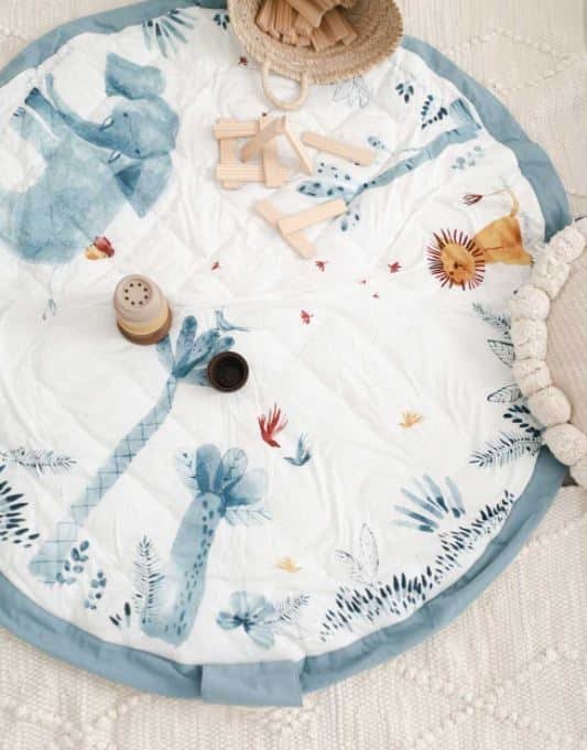 La savane se réveille sous l’imposant Play & Go Tapis D’éveil Moulin Roty Baobab… Laissez votre enfant explorer la savane sur ce tapis de jeu doux et magnifique conçu par Moulin Roty. Éveillez leur curiosité et regardez-les se lier d’amitié avec toute la faune de la savane. À la fin de la journée, rangez tous les jouets et transformez le tapis en un sac de rangement pratique. Promenez-vous facilement vers votre prochaine destination
