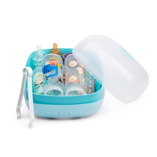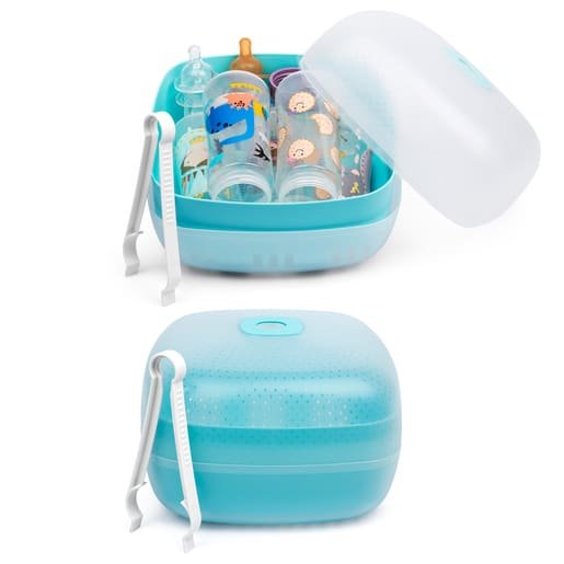 Le stérilisateur micro-ondes pour Suavinex stérilise facilement les biberons, tétines et accessoires pour bébé au micro-ondes grâce à la vapeur. Cette méthode de stérilisation est rapide, économique et ne nécessite pas de solutions ou de comprimés stérilisants. Avec une capacité jusqu’à 5 bouteilles !
